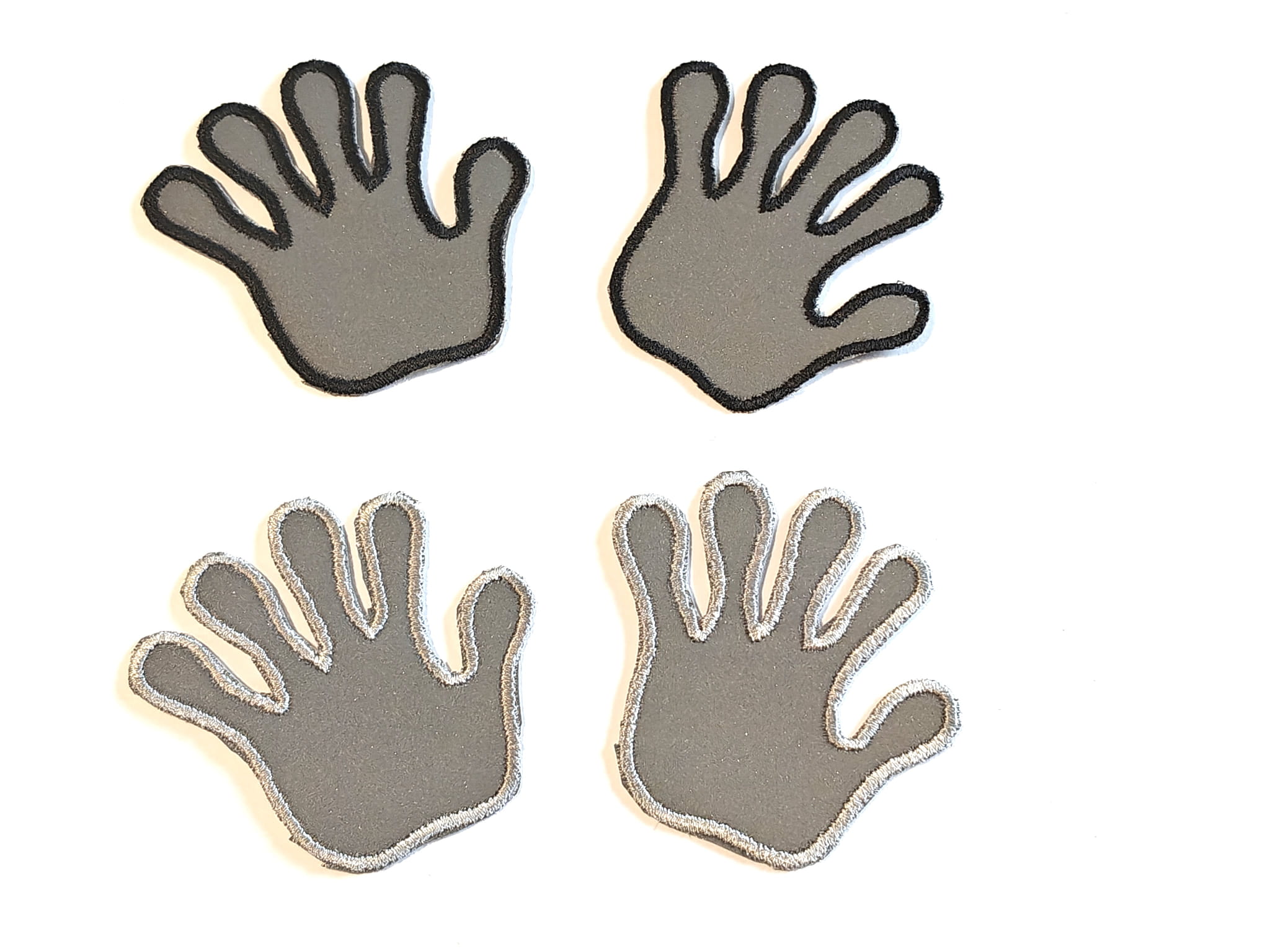 Rewelacyjna i wyjątkowo starannie wykonana aplikacja termoprzylepna: ręka heyah!. Naprasowanka to połączenie filcu i tkaniny odblaskowej. Tył naprasowanki jest pokryty specjalnym, mocnym klejem.
