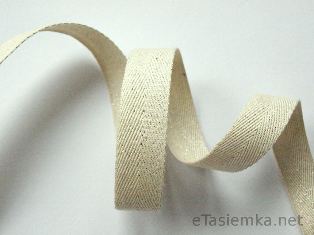 Tasiemka bawełniana jodełka ze srebrną nitką (15 mm)