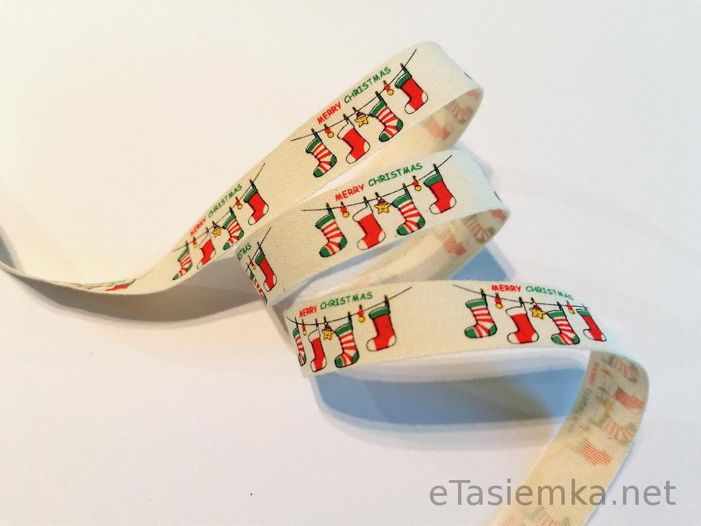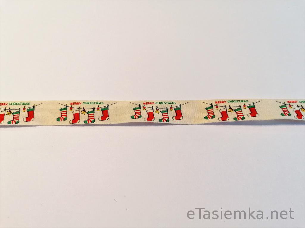 Tasiemka bawełniana - świąteczne skarpety (15 mm)